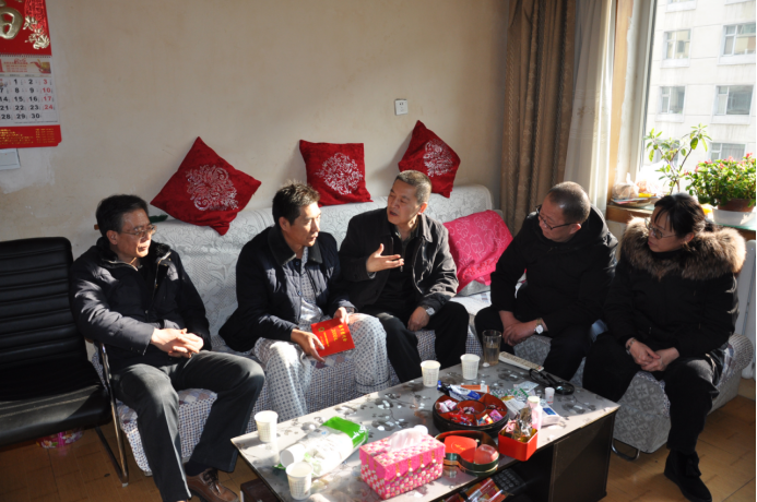 在退休老黨員、老勞模毛敏生和馮芳才家中,王玉輝書記與他們拉起家常,詢問他們的身體狀況和家庭情況,感謝他們?yōu)榍嗪N锂a(chǎn)發(fā)展所做出的努力和貢獻,并代表集團黨委送上組織的關懷和美好新春祝福。