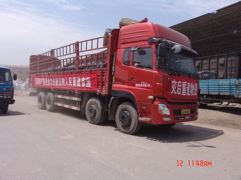 6月12日上午,由青海朝陽物流公司組織的首批五十輛裝滿災(zāi)后重建物資的重卡在省運(yùn)管局趙局長的一聲號令下從朝陽物流市場駛出,直奔玉樹災(zāi)區(qū),為災(zāi)后重建貢獻(xiàn)力量。