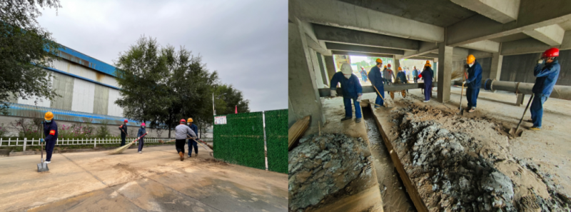 看著整潔的地面和自己身上滿是灰土的工作服,“先鋒隊”成員說道:“臟點累點我們都不怕,衣服臟了干完活再換就行,只要能為公司疫情防控和生產(chǎn)經(jīng)營出點力就好”。